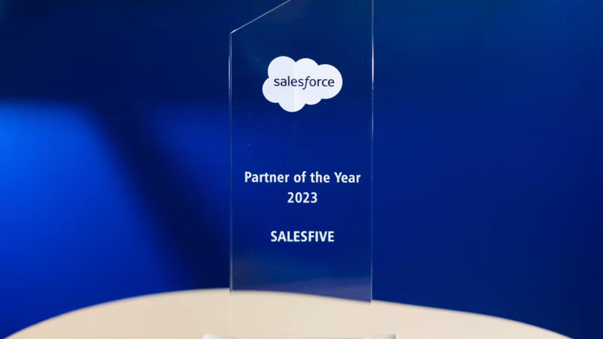 Die Partner-des-Jahres-Auszeichnung ist die höchste Ehrung, die Salesforce einmal im Jahr an seine Partner vergibt. 2023 erhielt Salesfive diese Auszeichnung für herausragendes Engagement und konsequent hohe Qualität über mehrere Jahre hinweg.