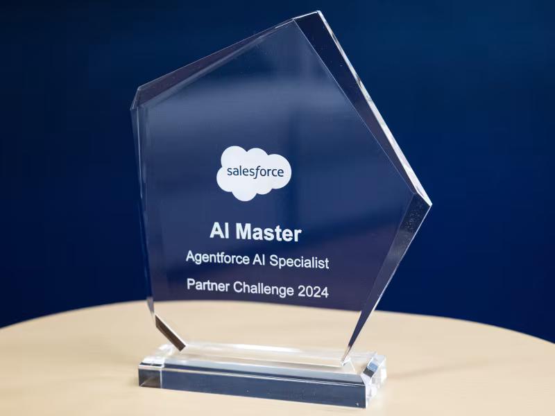Auszeichnung für die meisten AI-Zertifikate im Salesforce Ökosystem: Mit über 100 erfolgreich abgeschlossenen KI-Zertifizierungen wurden wir von Salesforce ausgezeichnet.